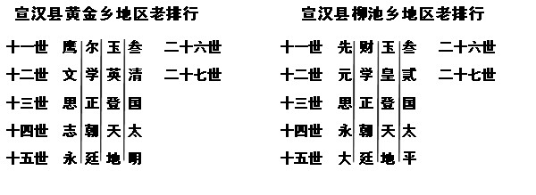 注:三山祖(清山、香山、松山)生湖广黄州府。蜀受瘟疫后,公元一五八七年迁入四川宣汉土主庙定居,为谱书一世。