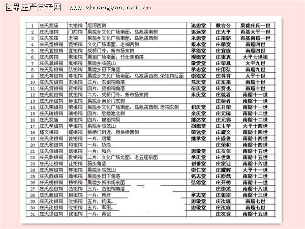 青阳锦绣庄氏(二世)思齐公家族裔孙仕宦情况暨播迁一览